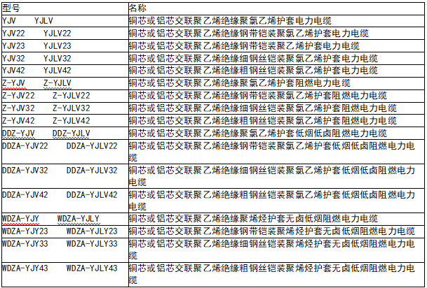 型號(hào)規(guī)格:YJLV32/YJLV42