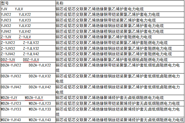 型號(hào):YJV YJLV YJV22 YJLV22 YJV32 YJLV32 YJV42 YJLV42
