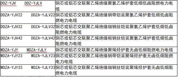 名稱:低煙無鹵阻燃電力電纜