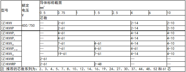 6、塑料絕緣控制電纜生產(chǎn)范圍