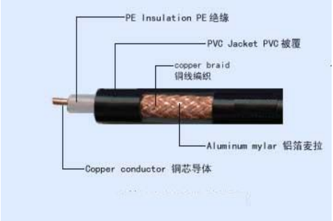 射頻同軸電纜絕緣材料采用物理發(fā)泡聚乙烯隔離銅線導(dǎo)體組成,在里層絕緣材料的外部是另一層環(huán)形導(dǎo)體即外導(dǎo)體,外導(dǎo)體(組織屏蔽層)采用銅帶成型、焊接、扎紋;或是采用鋁管結(jié)構(gòu);或是采用編織結(jié)構(gòu), 然后整個(gè)電纜由聚氯乙烯材料的護(hù)套包住。